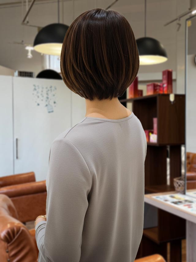 大人ショートボブ大人ショートボブ 後頭部に自然な丸みをつくったショートボブ。首元がすっきり見える軽さと、女性らしい柔らかさを両立した大人向けショートです。 【住所】 福岡県太宰府市国分1丁目13-39 【アクセス】 西鉄都府楼前駅/下大 […]